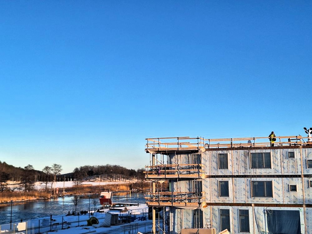 Bilder från januari 2026 på Ekerö Strand och bygget av kvarteret Idyllen på Jungmansgränd