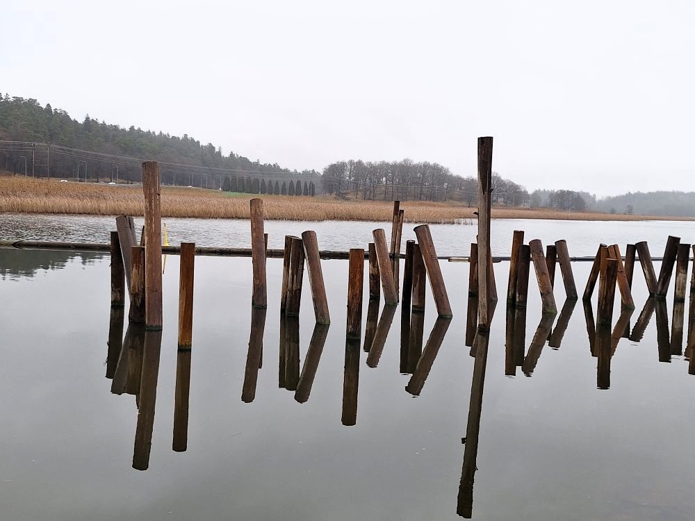 December var grådisigt och trist. På slutet av månaden stormade det rejält. På Ekerö Strand jobbar man på inför ledigheten den långa jul- och nyårshelgen.