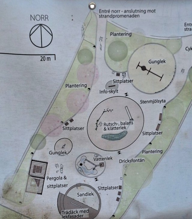 Så här ska lekplatsen på Ekerö Strand utformas. Hoppas det blir plats för gungor så att barnen inte behöver gunga och leka med de befintliga hammockarna.